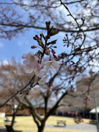 👇芝生広場の思川桜は数輪開きました